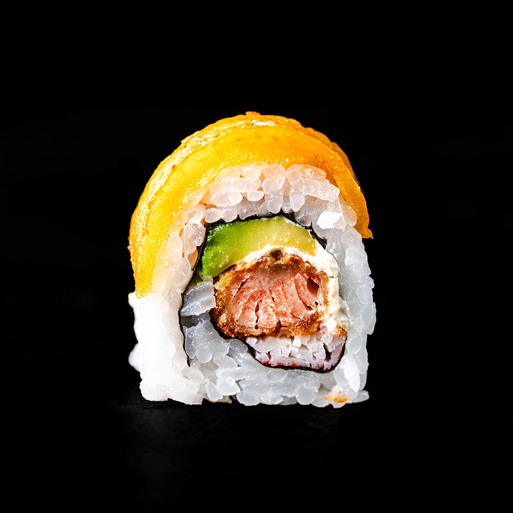 Fusión colombiana: aguacate, mango y queso crema se integran en rollos creativos.