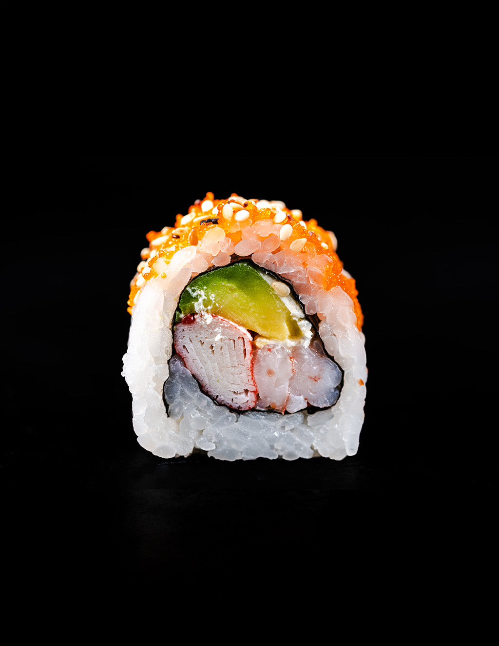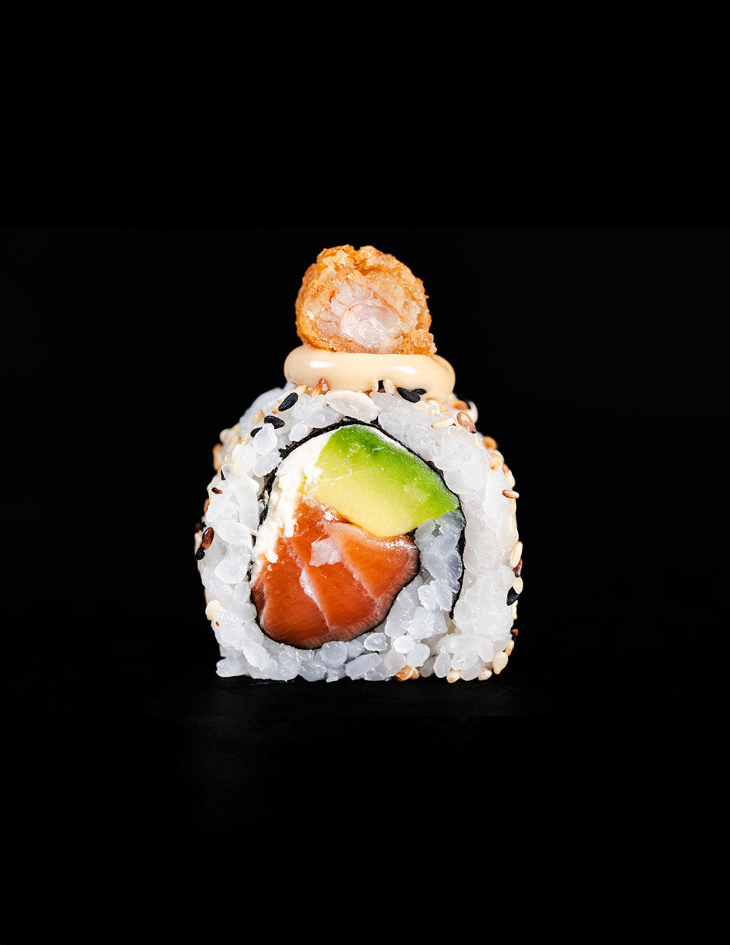 Uramaki: fusión con arroz por fuera y nori dentro, decorado con semillas y toppings para un look contemporáneo.