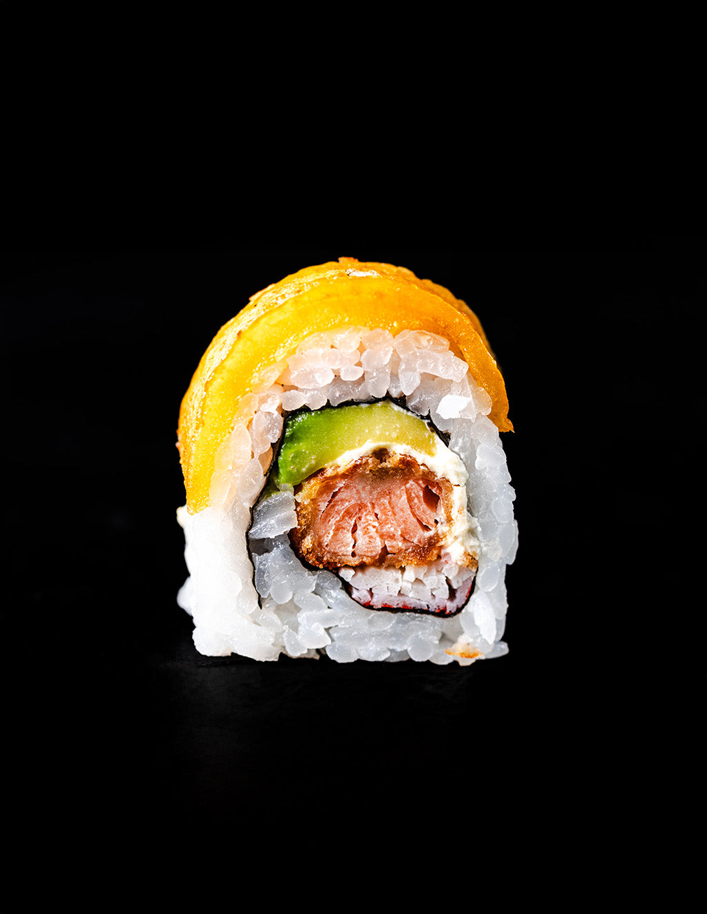 Fusión colombiana: aguacate, mango y queso crema se integran en rollos creativos.